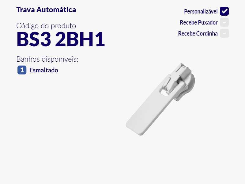 Sua composição garante alta resistência, durabilidade e acabamento superior. A fita de reforço de alta qualidade, aliada aos terminais superior duplo e inferior reforçado, assegura maior confiabilidade, resistência e desempenho. Pode receber banho ou esmaltação, o banho padroniza a tonalidade do deslizador proporcionando um acabamento diferenciado e tons exclusivos, enquanto a esmaltação garante a harmonia de cor entre deslizador, fita e espirais.