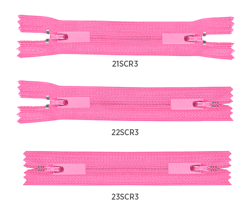 Código 22 - possui um terminal superior duplo e um terminal fixo, um em cada extremidade do zíper.